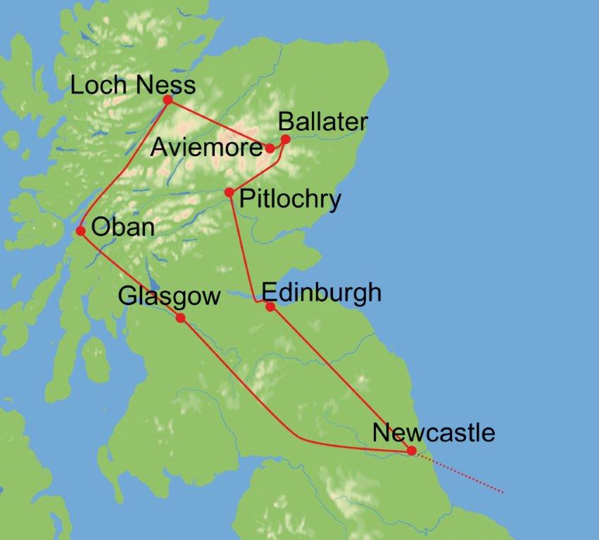 Sie wollen etwas entdecken, etwas erleben und dabei in kurzer Zeit viele Orte kennen lernen? Eine Busreise Schottland ist eine ideale Möglichkeit, in kurzer Zeit viele Orte und verschiedene Eindrücke zu bekommen und zu sehen. Mit dem Bus fahren Sie ab Kassel Richtung Amsterdam, von da aus geht es auf die Fähre, wo Sie eine Nacht verbringen und am nächsten morgen in Newcastle ankommen. Von dort aus geht es weiter Richtung Glasgow.